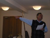 Beim Vortrag wurde von Herrn Gauermann ausführlich auf den historischen Zug des Caracalla eingegangen, beginnend vom Zeitrahmen bis hin zur Strecke, ausgehend von den Ausgrabungen am Limestor in Dalkingen, mit welchem er als ehem. Bürgermeister von Rainau ganz besonders vertraut ist (was ihm auch spürbar am Herzen liegt, nicht zu unrecht, da es sich schließlich um eine historische Sensation handelt.). Weiter wurde dann detailliert der weitere Verlauf des Feldzugs erläutert und fundiert begründet. Zur Auflockerung gab es einen kleinen Kurzfilm über die Geschichte des Limes in seinen verschiedenen Ausbauphasen. Schließlich wurde übergeleitet zum Projekt 1800 Jahre später. Hierzu wurde von Ralf Barth eine Ausrüstung ausgestellt und im Detail erläutert.