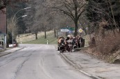 Die “Versuchsstrecke” führte den kleinen Probetross kreuz und quer durch Welzheim und das bei eisigen Temperaturen. Stefan und ich hingegen übten schon mal etwas unsere Aufgaben – testeten den Blog über UMTS von unterwegs, und fotografierten den Übungsmarsch – im Auto wars jedenfals etwas wärmer und auch bequemer ;)