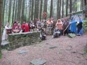Am nächsten Morgen ging es früh weiter. Das Wetter war wieder schlechter während des Marsches, es regnete immer wieder kurz. Zuletzt ging es wieder durch den Wald, die Wege wurden anspruchsvoller, bis sie nur noch wage zu erahnen waren. Hier wurde die Provinzgrenze von Obergermanien nach Raetien überschritten und den Fines, den Grenzgottheiten geopfert. Kurz danach war der erste Gefallene zu beklagen, er fiel aber ohne Feindeinwirkung aufgrund des rutschigen Untergrundes. Wieder eine Erfahrung mehr für ihn. Deshalb hatten die richtigernRömer genagelte Schuhe! Nach einer kurzen Wegstrecke am Rotenbach entlang endete der Marsch unterhalb des Kleinkastells Freimühle bei Schwäbisch Gmünd.