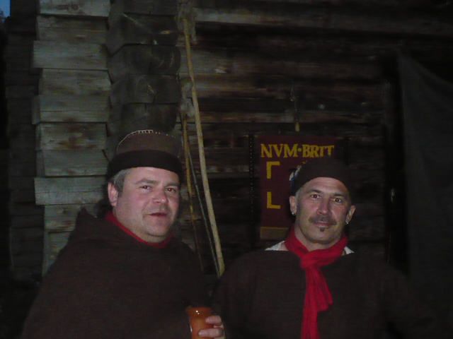 Am Nachmittag wurde am Limesturm in Lorch Stellung bezogen und das Nachtlager aufgebaut. In geselliger Runde baute sich unter den oftmals einander noch unbekannten Marschierern eine vertraute und lustige Gesellschaft auf. Erfahrungen wurden ausgetauscht und sogleich auch neue gesammelt: Feuer machen auf altertümliche Weise, Zubereiten von Puls nach Art der Brittonen (sehr schmackhaft), welcher selbstverständlich mit Cervisia und Wein hintergespült wurde. Wasser & Posca sind doch eher besser auf dem Marsch.