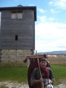 Am Nachmittag wurde am Limesturm in Lorch Stellung bezogen und das Nachtlager aufgebaut. In geselliger Runde baute sich unter den oftmals einander noch unbekannten Marschierern eine vertraute und lustige Gesellschaft auf. Erfahrungen wurden ausgetauscht und sogleich auch neue gesammelt: Feuer machen auf altertümliche Weise, Zubereiten von Puls nach Art der Brittonen (sehr schmackhaft), welcher selbstverständlich mit Cervisia und Wein hintergespült wurde. Wasser & Posca sind doch eher besser auf dem Marsch.