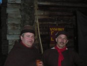 Am Bucher Stausee wurde auch gleich der Lagerplatz in Augenschein genommen. Anschließend wurde noch eine Exkursion ins Goldene Lamm nach Rainau – Schwabsberg unternommen. Dort hielt gerade Limes-Cicerone Roland Gauermann arglos einen Vortrag über den Verlauf des Feldzugs von 213. Zwei Miles nutzten die Gelegenheit zum Einmarsch und erklärten den (trotzdem angenehm) überraschten Cicerone kurzerhand im Namen des Kaisers für verhaftet. Geistesgegenwärtig konnte er sich aber umgehend durch eine großzügige Spende germanischen Gerstensaftes auslösen. Letztlich konnten die Beiden ihm bei seinen Erklärungen gegenüber den zahlenmäßig deutlich überlegenen Germanen beistehen und zu einem glücklichen Abschluss seines Vortrags beitragen.